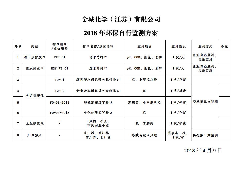 金城化學2018年環(huán)保自行監(jiān)測方案